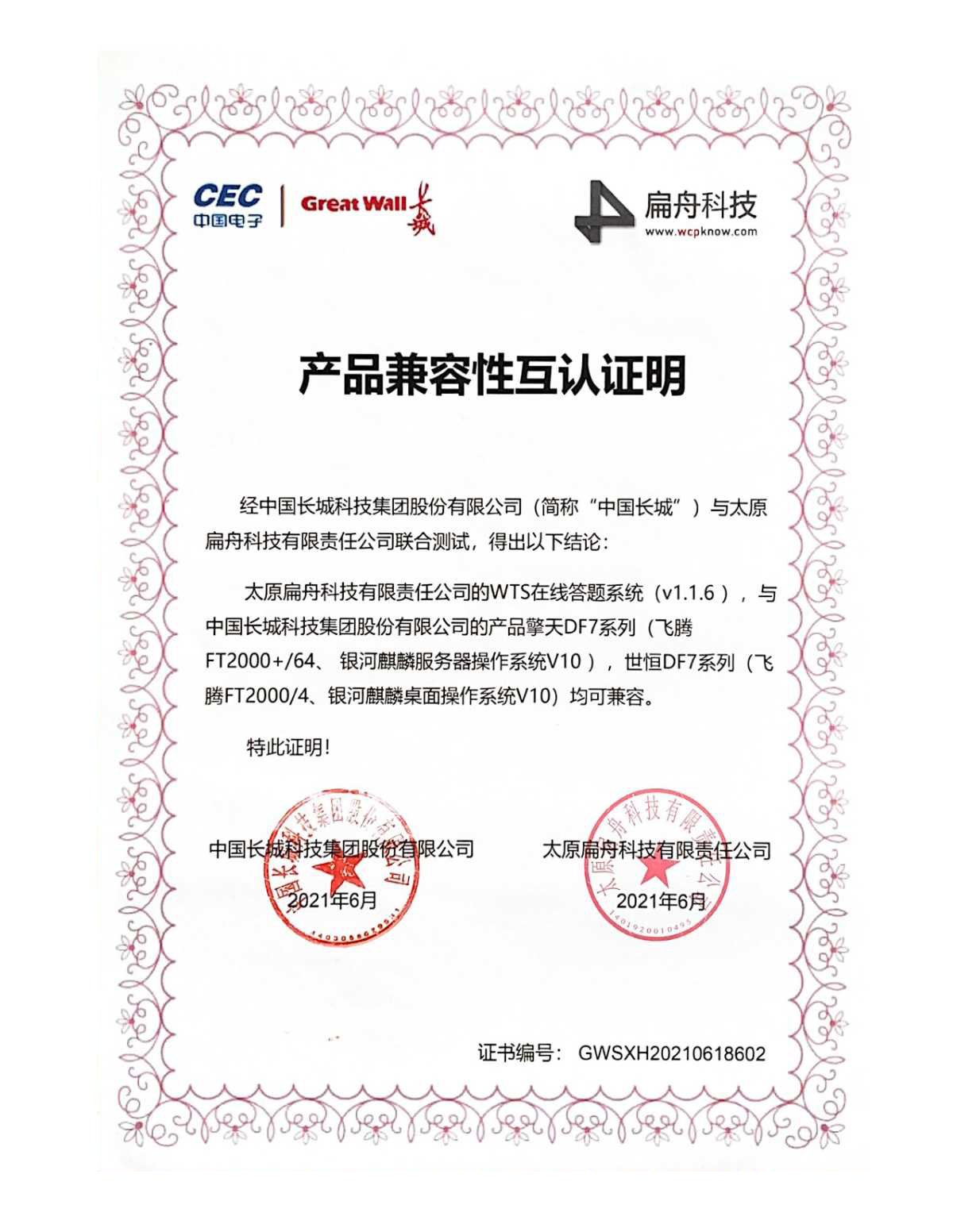 国产化平台产品兼容性认证
