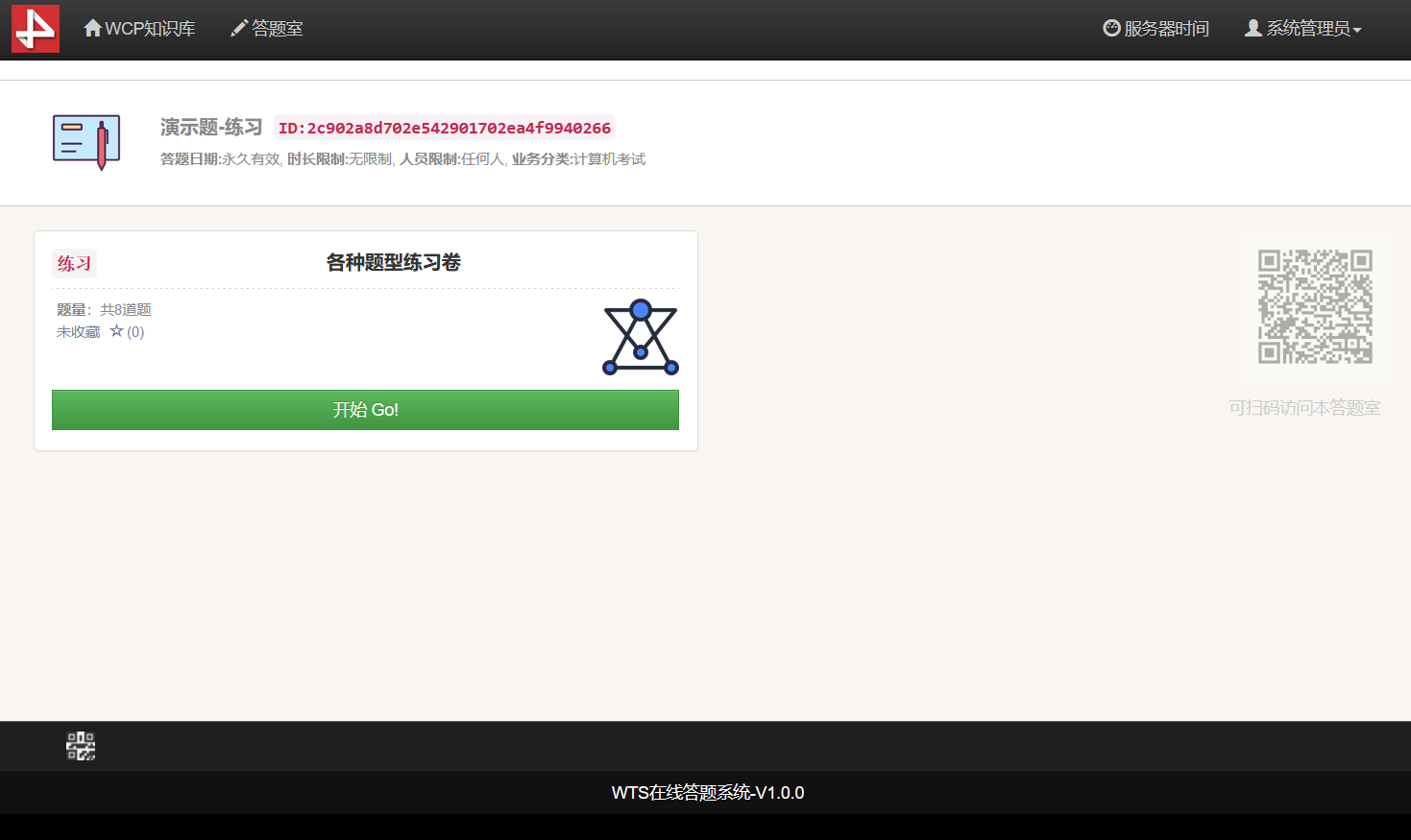 用戶在答题室中随机抽取本答题室中的题目进行题目练习,在练习过程中可随时查看答案和终止练习,系统实时显示练习结果和正确情况。